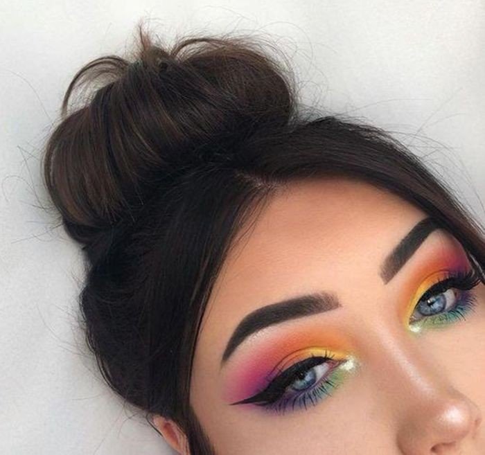Meninas, vocês podem arrasar no olhar e ainda por cima ter o elemento coringa para a sua fantasia ou para turbinar seu look de verão na noite.Basta escolher uma sombra super pigmentada, seja ela em pó ou em creme, também tem as versões caneta, use pelo menos duas cores que se sobrepõe e ajudam a dar destaque uma a outra, também pode trabalhar com um pigmento néon, e que seja super aceso, o segredo é desenhar antes com um lápis bem fraco o desenho e a limitação de cada cor.